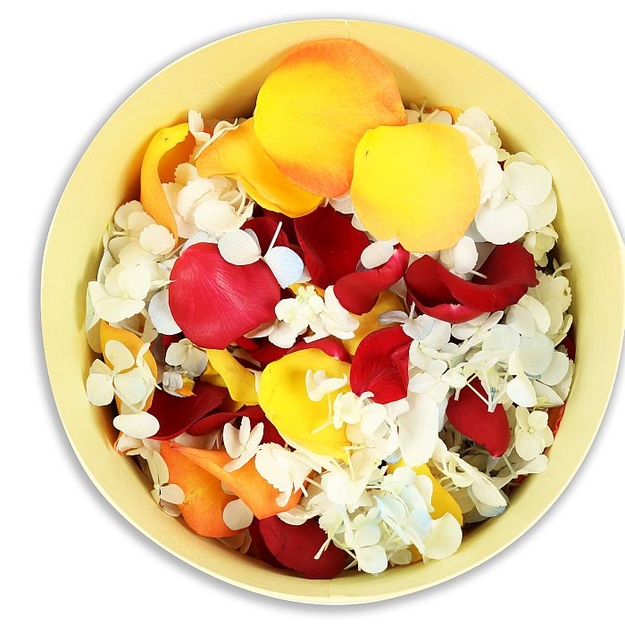 Embrace the beauty and uniqueness of our charming bouquet, combining vibrant hydrangea, rose, and chrysanthemum petals. This elegant arrangement is perfect for adding a touch of sophistication to any ceremony.