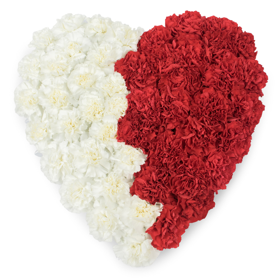 Embrace timeless elegance with our Radiant Heart-Shaped Carnation Display. This stunning arrangement features a harmonious blend of white and red carnations arranged in a beautifully unique heart shape. Each carnation is carefully chosen for its exceptional freshness, offering an unparalleled display of color and texture.
